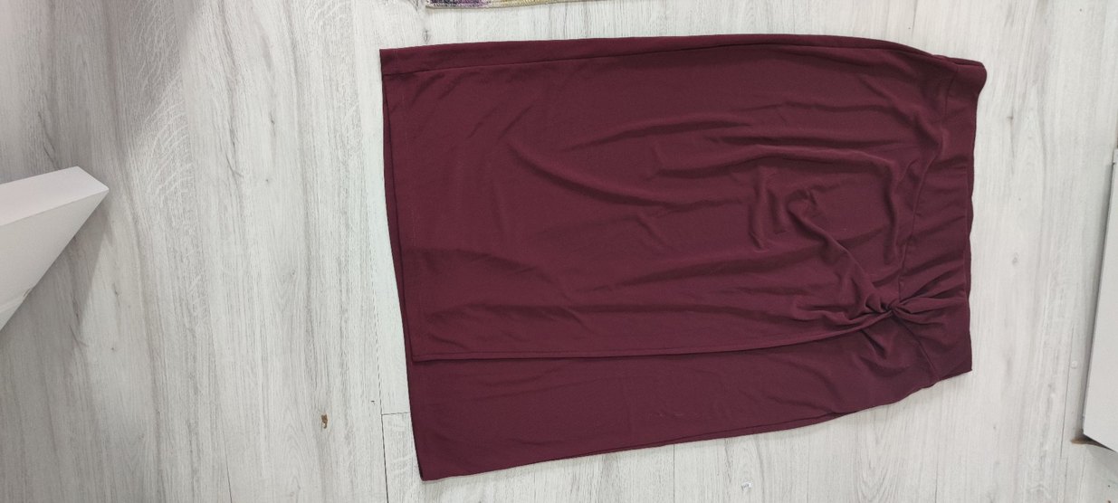 Kadınlar için bordo renkte, drapeli tasarıma sahip, yumuşak sentetik kumaştan yapılmış şal. Minimalist ve normcore stile uygundur.