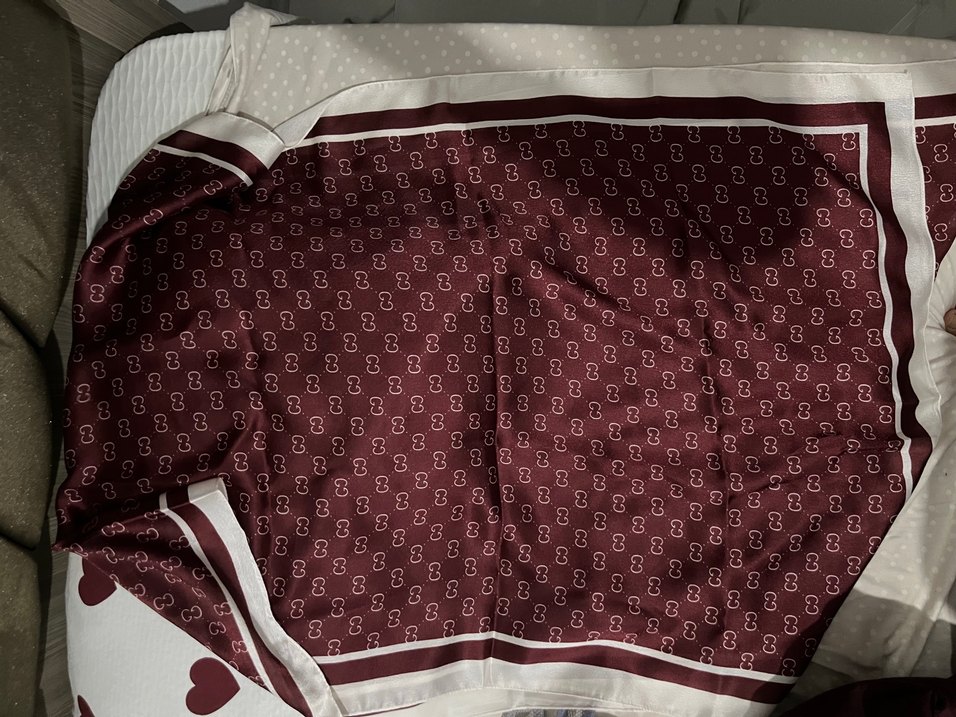 Bordo renkte, sentetik kumaştan drapeli kadın şalı, modest sokak stili için uygun, koyu renk tonunda.