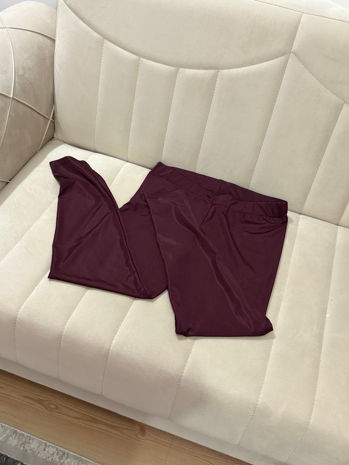Bordo renkli, drapeli ve midi boyda, kadınlara özel, ipeksi dokulu ve dar kesim tayt. Günlük sokak stiline uygundur. ♀️