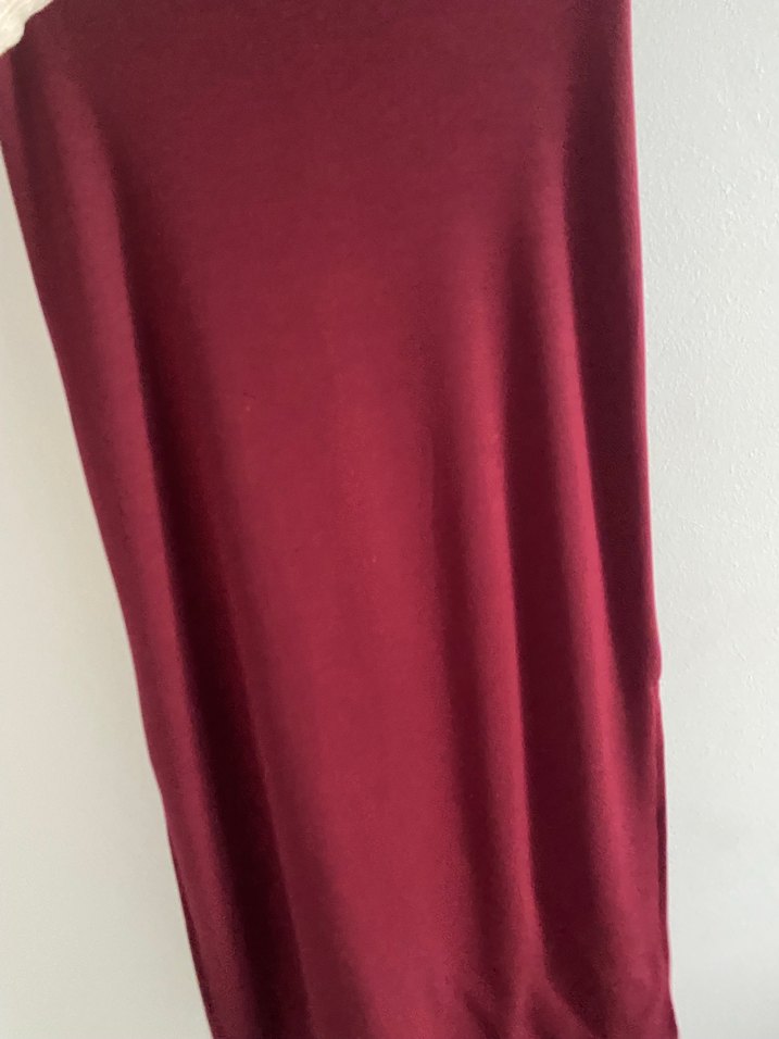 Bordo renkli, drapeli ve vücuda oturan uzun etek. Pürüzsüz sentetik kumaştan, minimalist ve normcore tarzda, günlük kullanıma uygun.