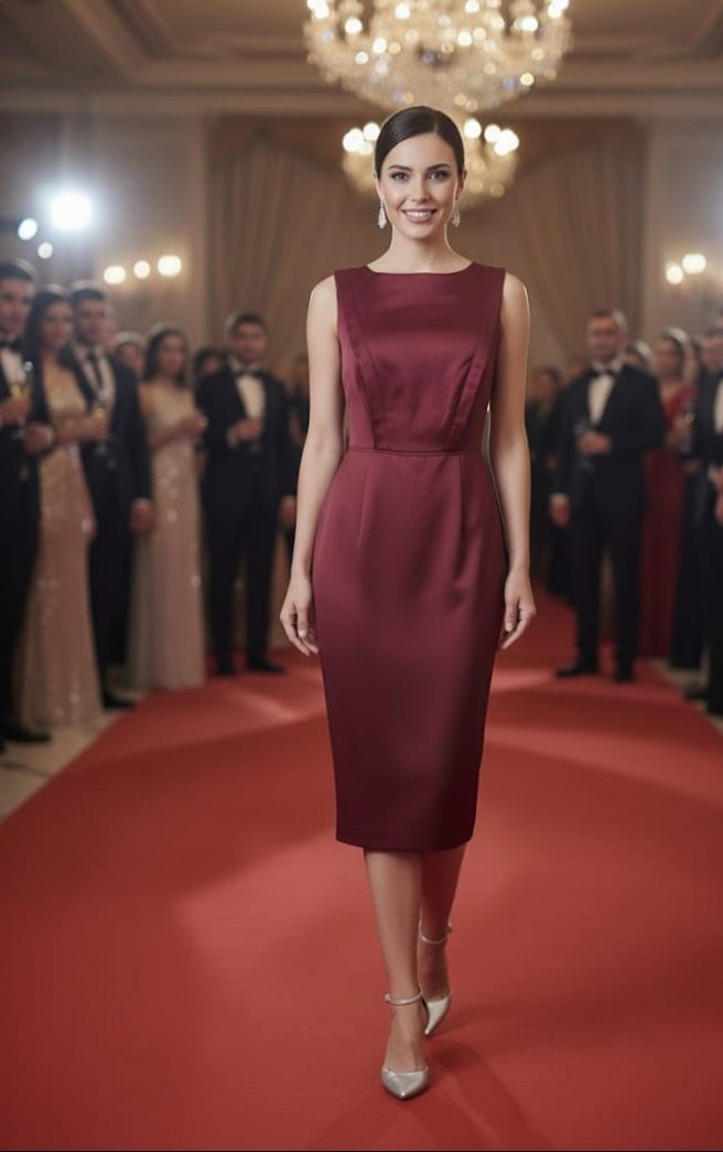 Bordo midi abiye elbise, tek renklidir ve drapeli detaylara sahiptir. Kayık yaka ve kolsuz kesimi ile modern klasik bir şıklık sunar. ✨mat saten kumaş #zara#mango#bershka#vakko#koton#adilışık#beymen#twist#