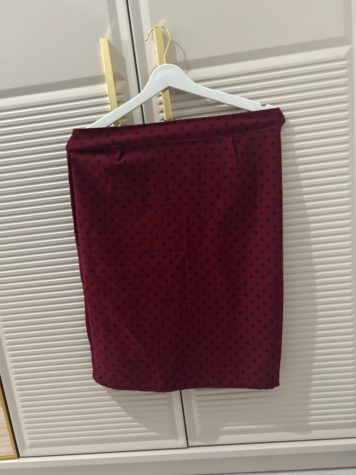 Bordo renkli, drapeli ve midi boyda, sentetik kumaştan üretilmiş, vücuda oturan hamile eteği. butık urunu