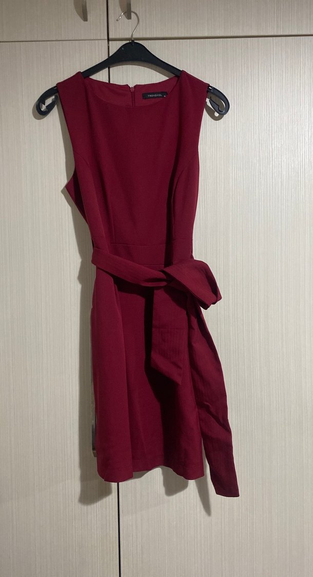 Bordo Drapeli Midi Kadın Elbise