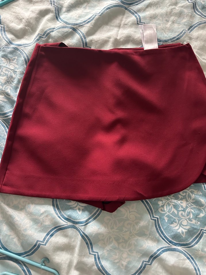 Bordo renkli, drapeli ve parlak dokulu, midi uzunlukta, vücuda oturan mini etek. Romantik buluşmalar ve sokak stili için uygun.
