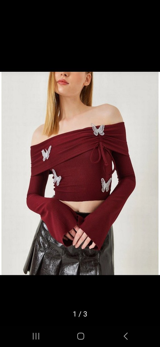 Bordo straplez, uzun kollu, drapeli tasarıma sahip mini bluz.M beden uyumlu yeni/etiketli, dar geldiği için satacağım,trendyoldaki fiyatı 569 tl.
