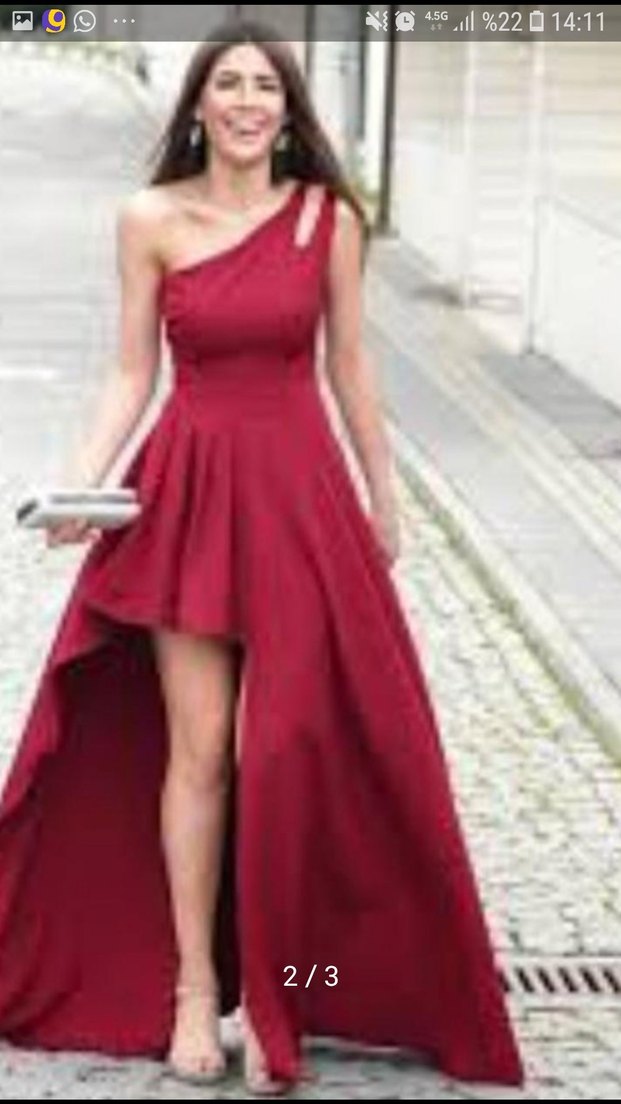 Bordo renkte, parlak ve drapeli tasarıma sahip, uzun abiye elbise. Düğün ve özel davetler için modern klasik şıklık sunar. M beden fakat S bedene de olur