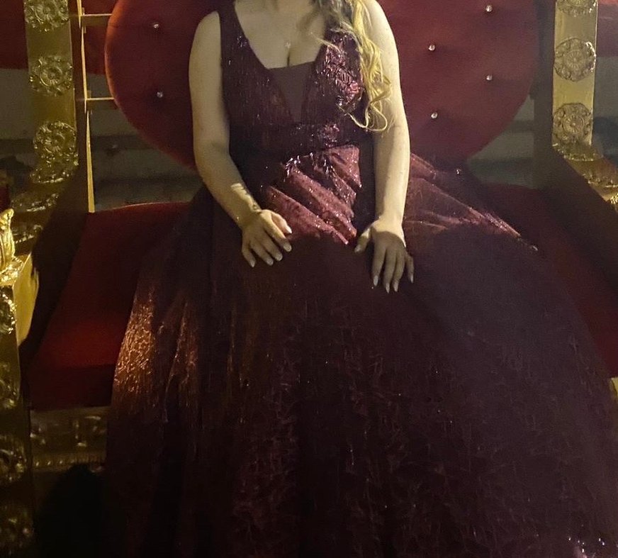 Bordo renkte, V yakalı ve drapeli tasarıma sahip, desenli uzun ve kolsuz abiye elbise. Klasik zarafet ve bohem tarzı yansıtır, düğün için uygundur. Arkası ipli modeldir 38 ve 40 beden için uygundur.