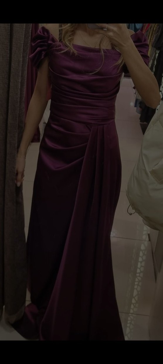 Klasik ve şık, bordo renk straplez uzun abiye elbise. Drapeli tasarımı ve vücuda oturan kesimiyle düğünler için uygun, kollu olmayan modern bir model.