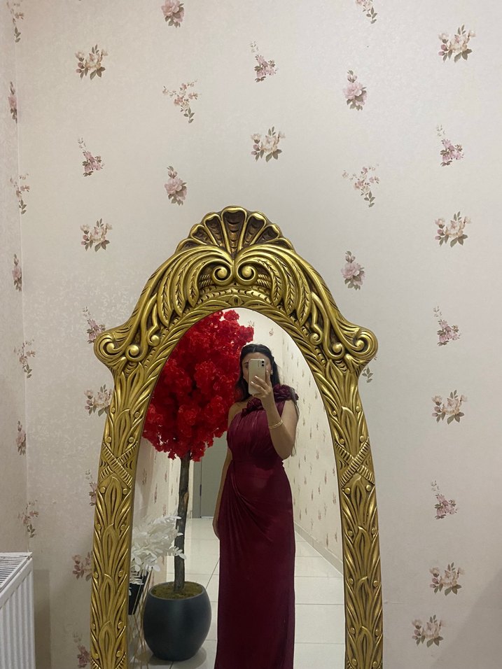 Bordo Drapeli Uzun Abiye Elbise