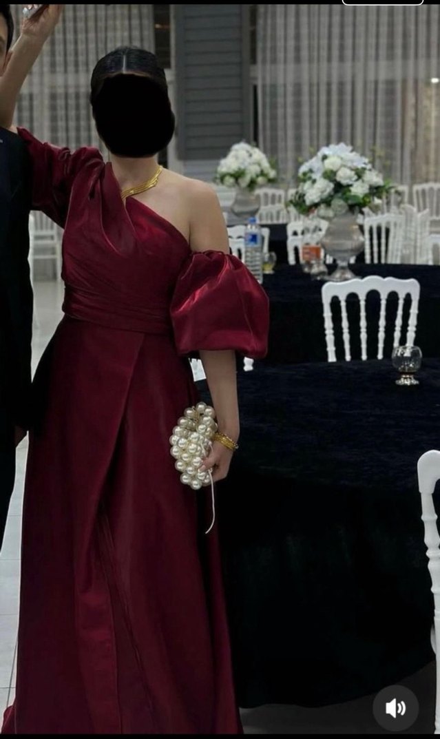 Kıyafet sepetinden aldım M beden (38). Sadece 1 defa kız kardeşimin düğününde giydim. Bordo renkli, straplez yakalı ve drapeli detaylara sahip uzun abiye elbise. Fitted kesimi ve desenli kumaşı ile modern klasik tarz sunar. Paris esintili şıklık sağlar.
