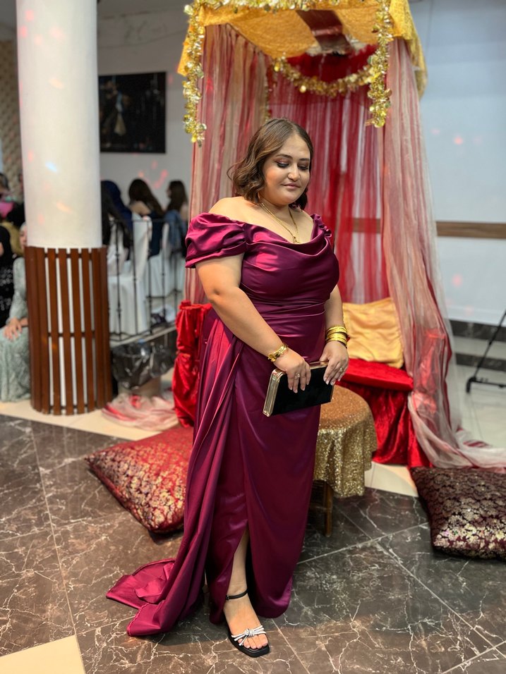 Bordo renkli, drapeli ve vücuda oturan uzun abiye elbise, straplez yakası ve ince askılarıyla modern klasik tarzda, gösterişli davetler için uygundur. ✨pazarlık payı vardır
