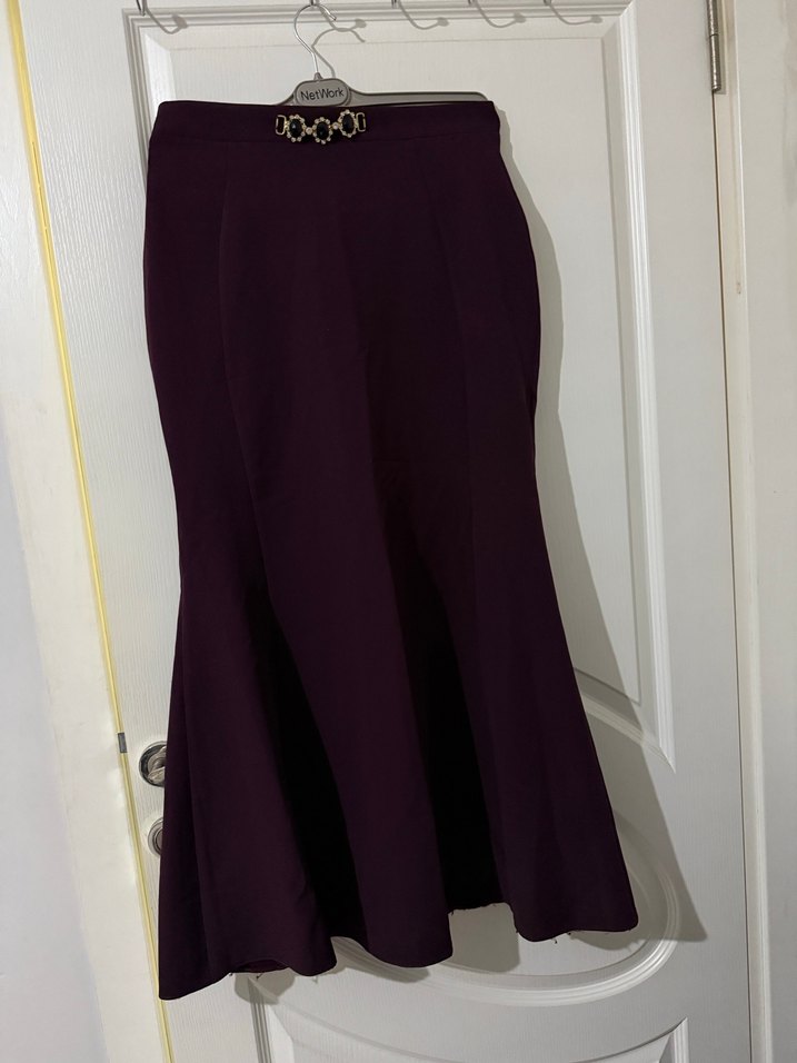 Bordo Drapeli Uzun Kadın Etek