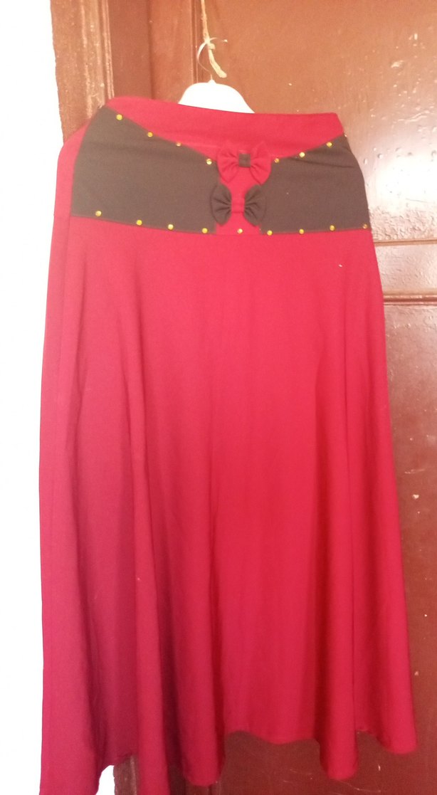 Beli drapeli ve küçük süslemeli, bordo renkte, sentetik kumaştan yapılmış, dar kesim uzun etek. Minimalist tarzda, romantik akşamlar için uygundur. ❤️