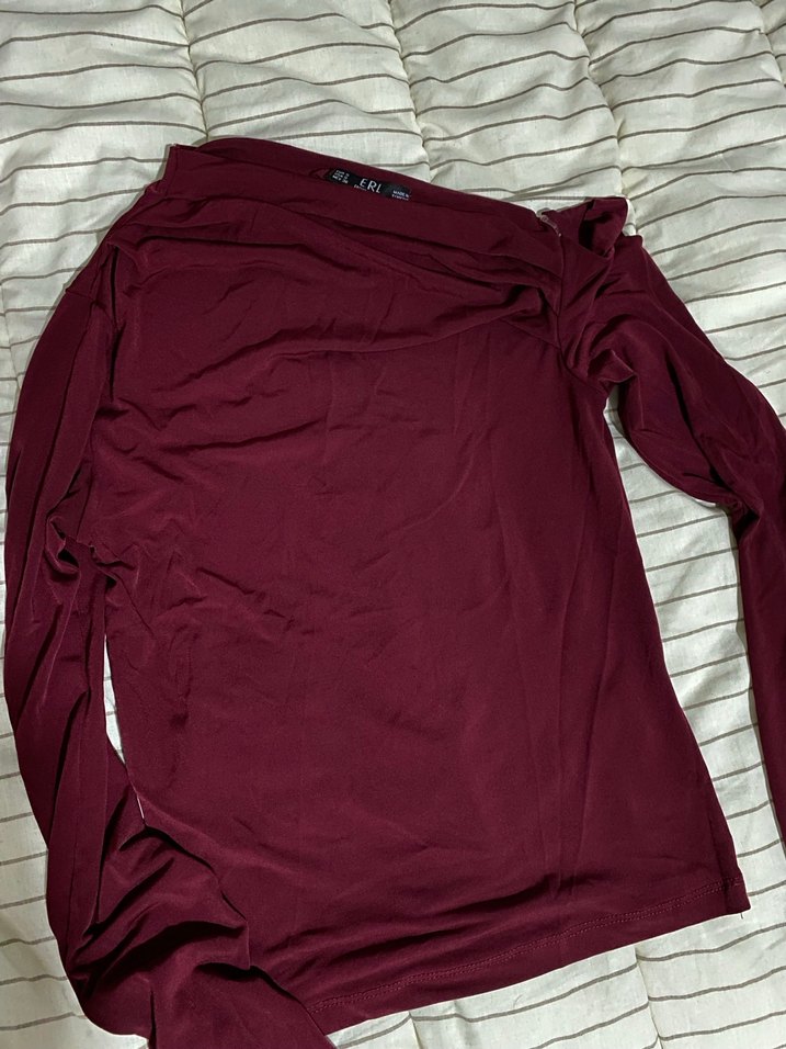 Bordo Drapeli Uzun Kollu Kadın Bluz