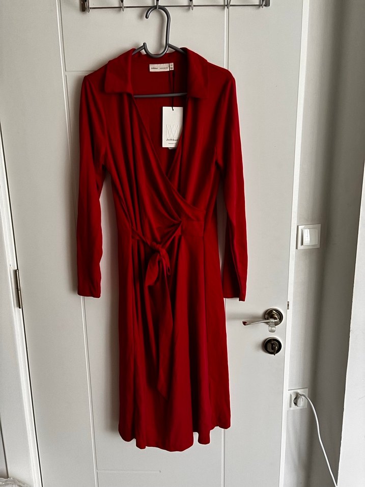 Bordo renk, drapeli ve V yakalı bu midi elbise, uzun kollu ve ince kesimdir. Yumuşak ve parlak kumaştan, klasik ve minimal bir şıklık sunar.
