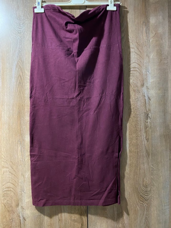 Fitted kesime sahip, bordo renkli, penye kumaştan drapeli uzun etek. Minimalist, sade tarzıyla günlük sokak stiline uygun. Hamile beli ayarlamalı etek 36-38 uyumlu