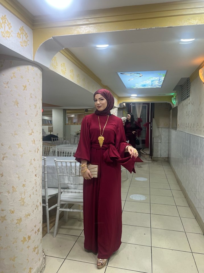 Bordo Drapeli Uzun Tesettür Abiye Elbise
