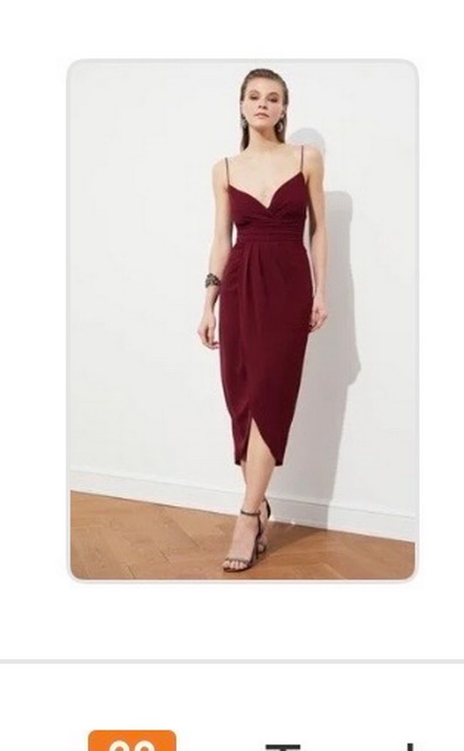 Bordo mürdüm arası bir renkte, drapeli ve ince askılı V yakalı uzun kadın elbisesi. Sade ve şık tasarımıyla romantik akşamlar için uygun, dar kesim ve desensiz model. Sadece bir kez düğünde giyildi
