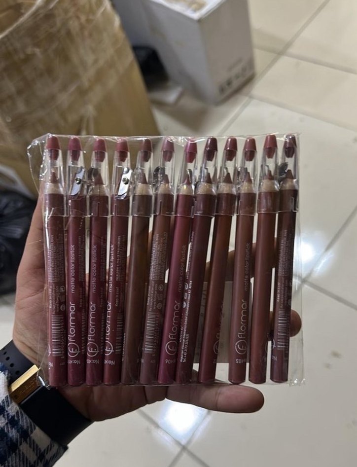 Bordo ve pastel tonlarda dudakları belirginleştirmek için yumuşak dokulu dudak kalemi seti.