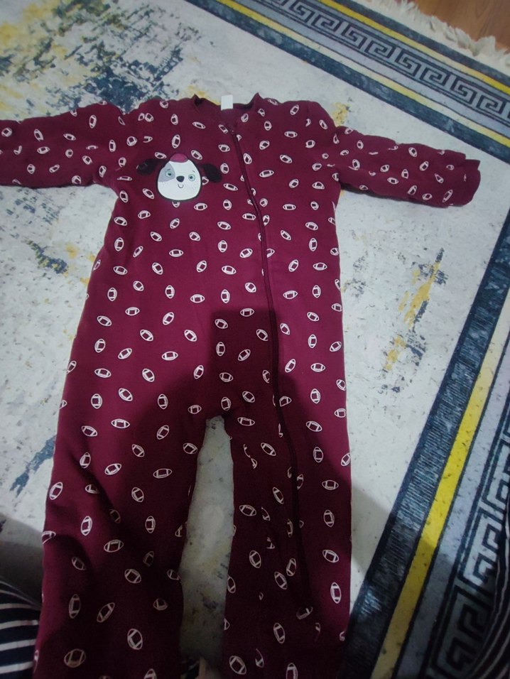 Bordo renkli, uzun kollu, düğmeli çocuk polar pijama. Yuvarlak yakalı ve küçük desenlerle renkli bir tasarıma sahip. ❄️