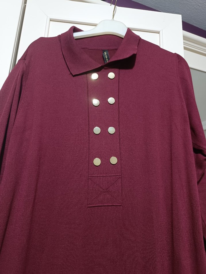 Bordo Düğmeli elbise