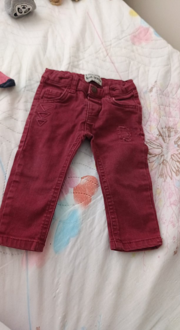 Bordo renkli, düğmeli ve dar kesim erkek çocuk kot pantolon, sokak modasına uygun rahat bir tarz sunar.
