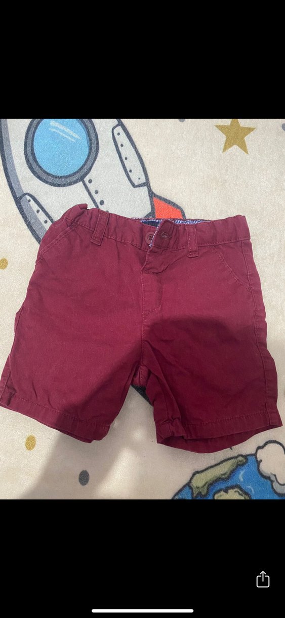 Pamuk kumaştan yapılmış, düğmeli ve sade tasarımlı bordo renkli, dar kesim erkek çocuk şortu.
