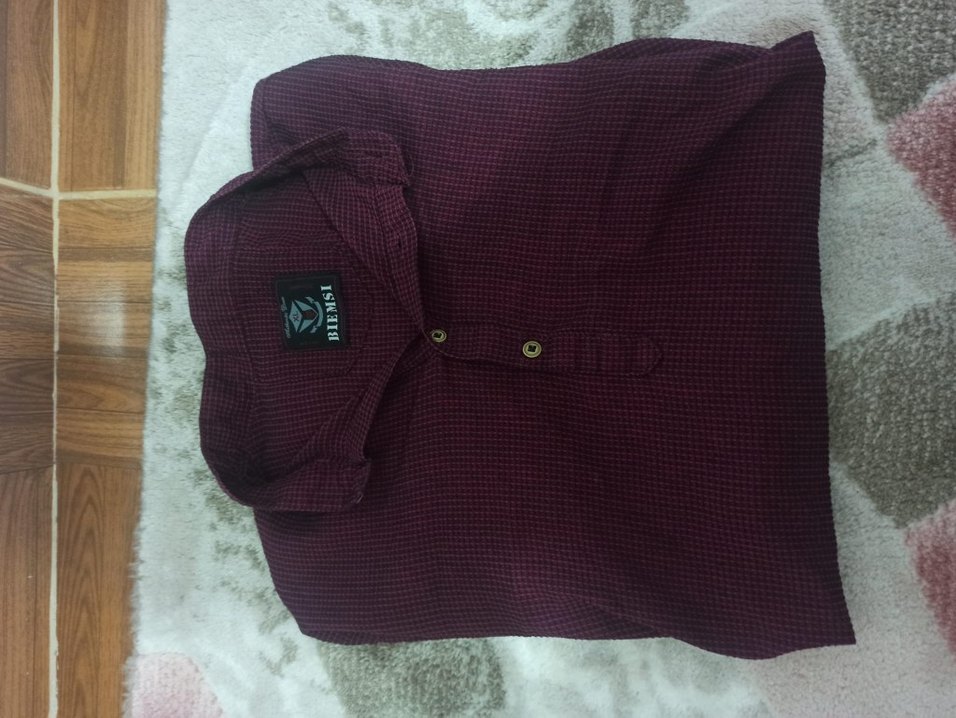 Uzun kollu, düğmeli bordo renk erkek gömlek. Sayılı giyildi ama kusuru yoktur