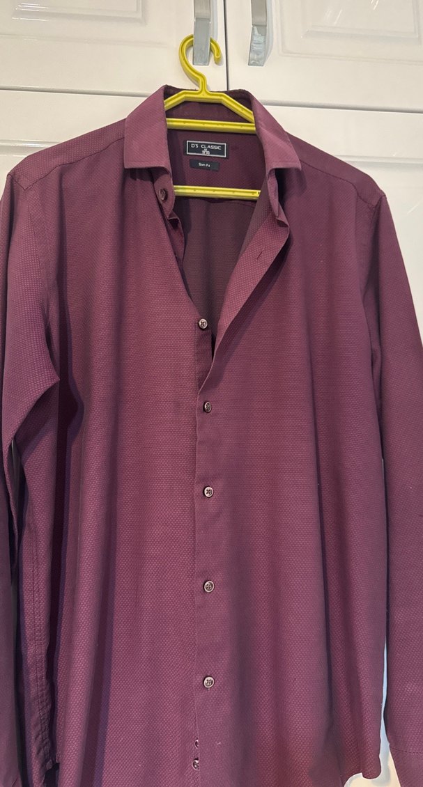 Bordo renkli, düğmeli, notched lapel yakalı erkek gömleği. Uzun kollu, regular fit ve normal boyda, ofis ve sokak tarzına uygun.