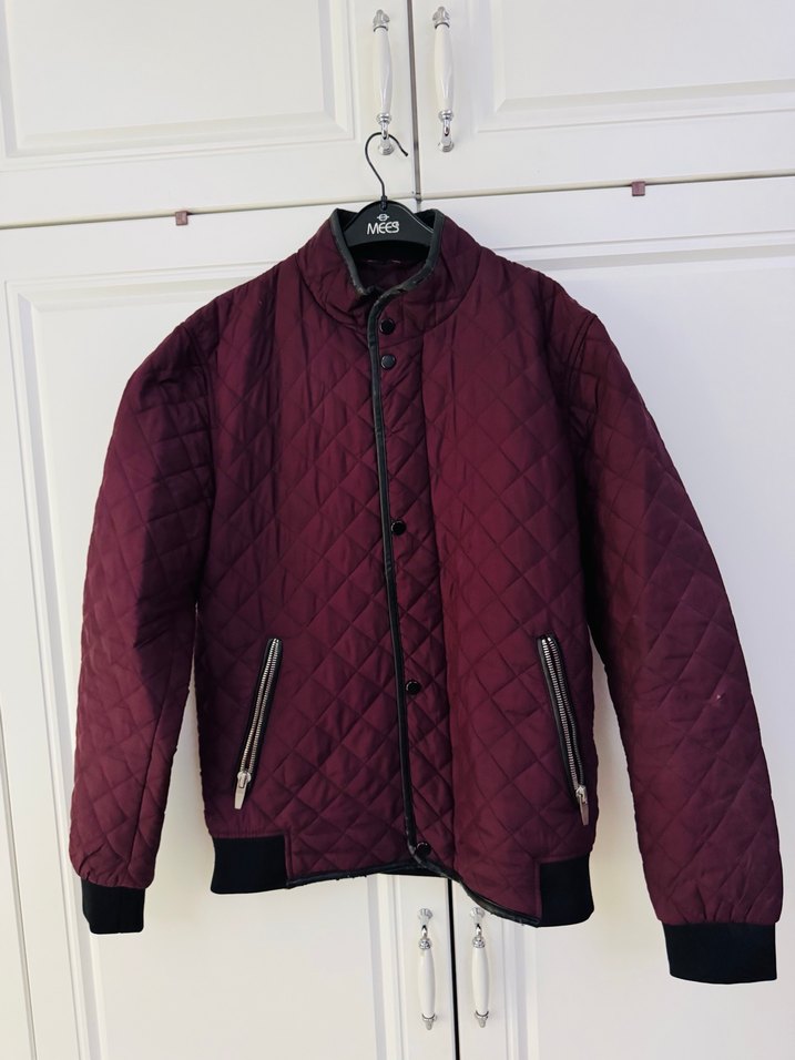 Bordo renkli erkek mont, düğmeli ön ve kesik yaka detayına sahiptir. Regular fit, uzun kollu ve normal boyda, sentetik kumaştan, kapitone dokulu. Minimalist tarzda günlük kullanım için uygundur.