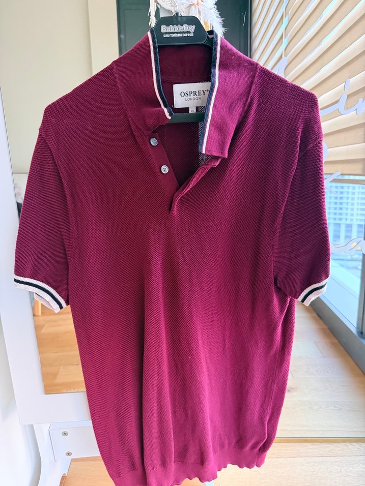 Bordo renk, düğmeli ve yakalı erkek polo tişörtü ve Lacivert renk, düğmeli ve yakalı erkek polo tişörtü bersber satklık. Kısa kollu, bol kesim ve parlak sentetik kumaştan, günlük rahat sokak stili için uygundur. OSPREY markalı.