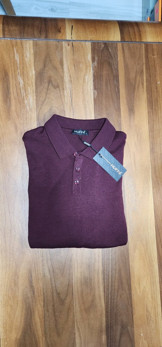 Bordo renkli, düğmeli ve polo yakalı erkek tiriko. Yün kumaştan yapılmış, uzun kollu ve rahat kesimlidir. Günlük ve sokak stiline uygundur.