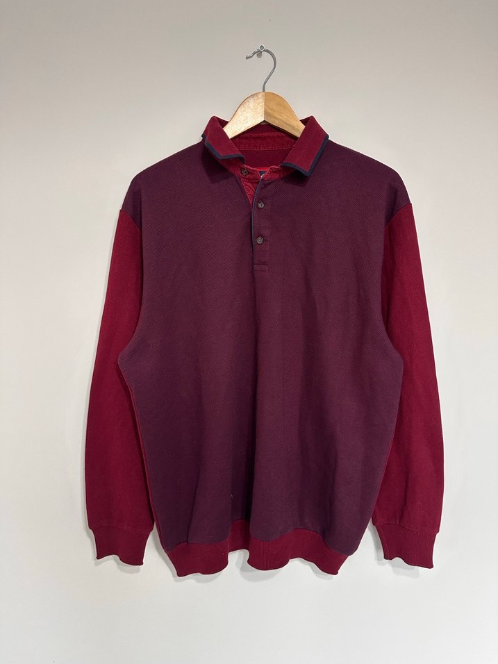 Boy: 75 En: 60 Bordo renkli, düğmeli, yakalı erkek sweatshirtü, uzun kollu ve bol kesimdir. Yumuşak ve sıcak kumaştan üretilmiştir, günlük kullanıma uygundur.
