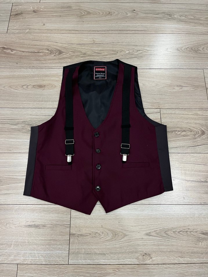 Bordo Düğmeli Erkek Yelek