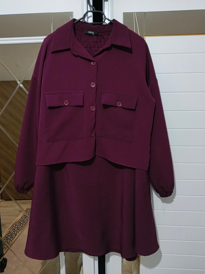Bordo etekli 2 li takim hic giyilmedi temiz hasarsiz beden XL