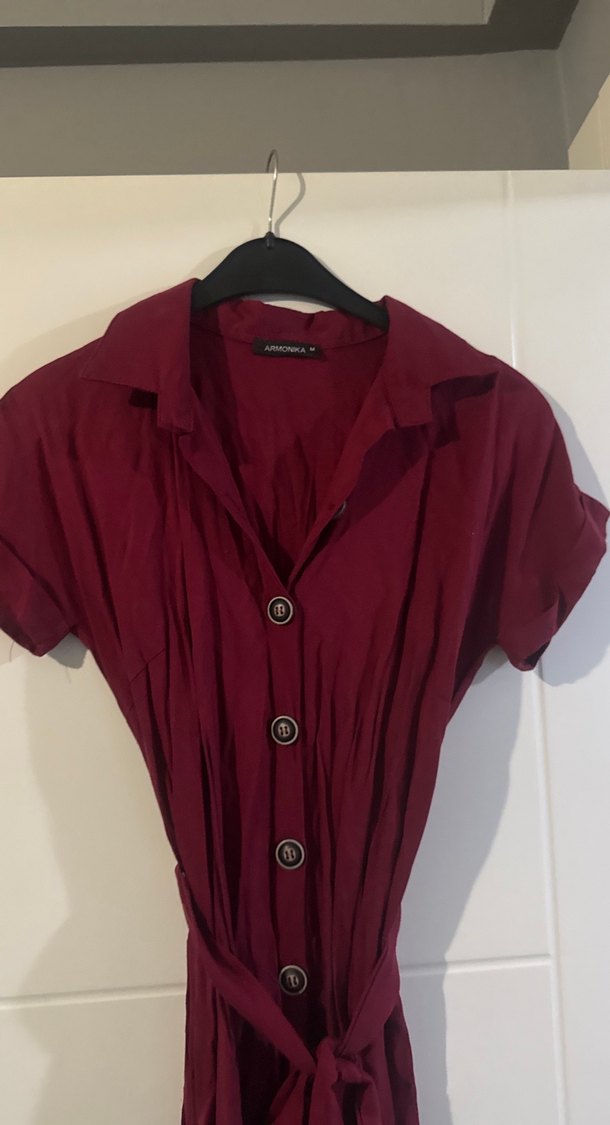 Bordo Düğmeli gömlek Elbise