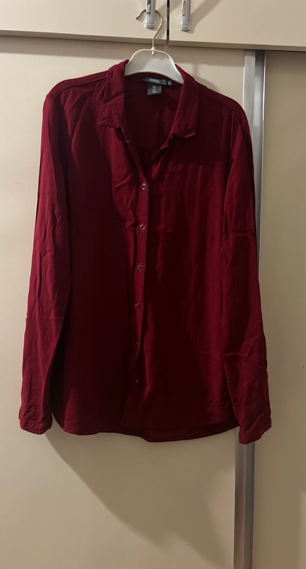 Bordo Düğmeli Kadın Gömlek