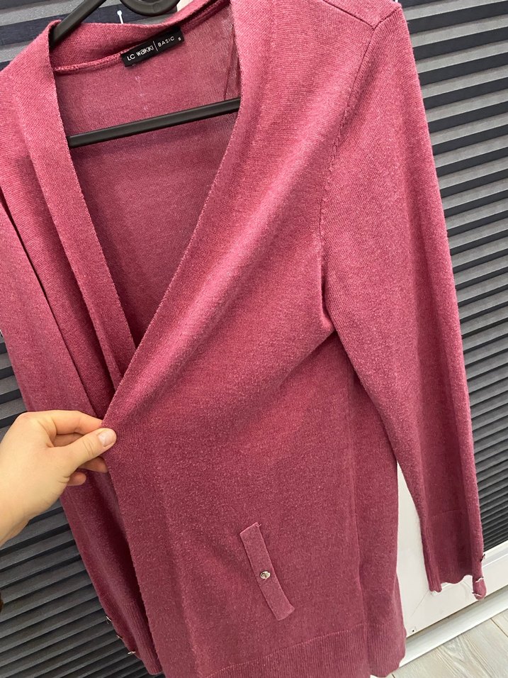 Bordo renkli, düğmeli ve uzun kollu kadın hırkası, normal uzunlukta ve bol kesimdir. Yumuşak sentetik kumaştan yapılmıştır, günlük kullanıma uygundur.