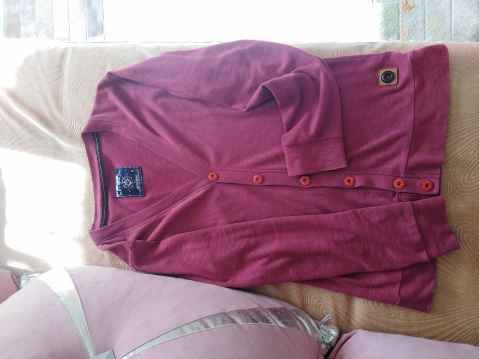 Bordo renkli kadın hırka, düğmeli önde. Yumuşak ve sıcak kumaştan, uzun kollu. Midi boyu günlük rahat kullanım için uygundur. Tertemiz sorunsuz