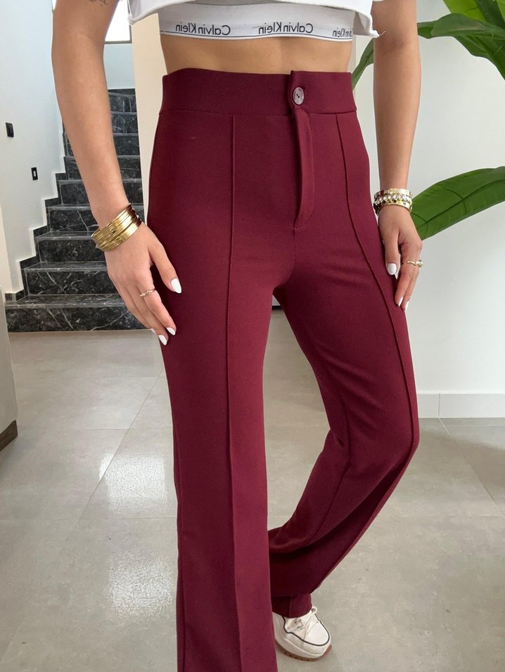 Bordo Düğmeli Kadın Kumaş Pantolon