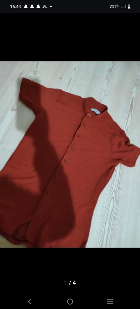 Bordo renkte, düğmeli, kısa kollu ve yakalı erkek gömleği. Sentetik kumaştan, dar kesim ve günlük sokak stili için uygundur. 1 2 kez kullanıldı