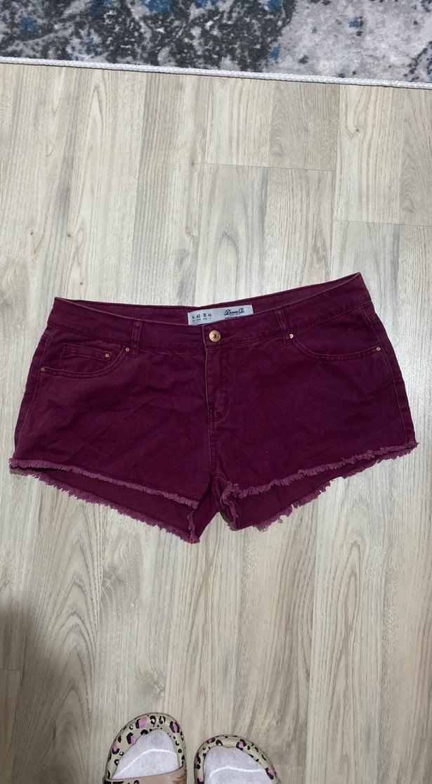 Bordo Düğmeli Mini Şort