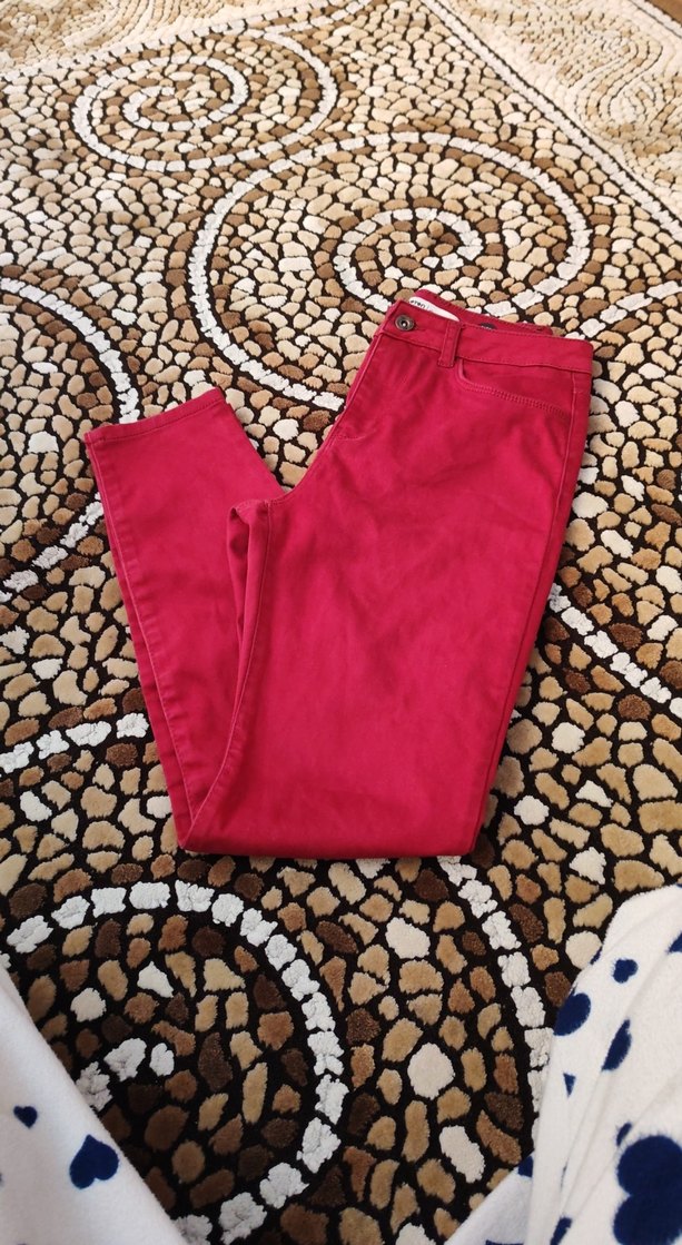 Bordo renkli, düğmeli ve rahat kesim kadın pantolon. Tekstil kumaştan, günlük kullanıma uygun sokak stili rahatlığı sunar.