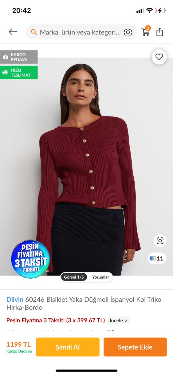 Sadece bir kez giyildi yeni gibi. Hiçbir deformesi yok . Dolabımı boşaltıyorum o sebeple satıcağım. Bordo renk, düğmeli ve bisiklet yaka triko. İspanyol kol ve fitted kesimiyle günlük kullanıma uygun.