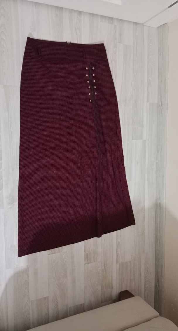 Bordo Düğmeli Uzun Kadın Etek