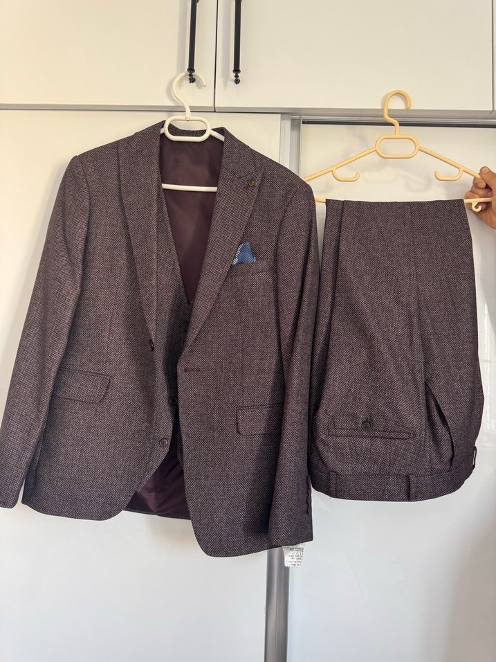 Bordo renkli, düğmeli ve uzun kollu erkek takım elbisesi, normal boy ve regular fit kesime sahiptir. Ofis kullanımı için uygundur ve klasik şıklık sunar. ️