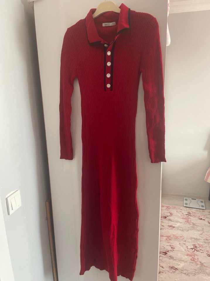 Bordo renkli, düğmeli ve yakalı uzun kollu elbise. Vücuda oturan kesimi ve yumuşak sentetik kumaşıyla rahat bir kullanım sunar. Etiketi koparıldı ama hiç giyilmedi.Vücudu sarar.Hiç bir deformesi bulunmuyor.Fiyat tekliflerinize açığım.:)
