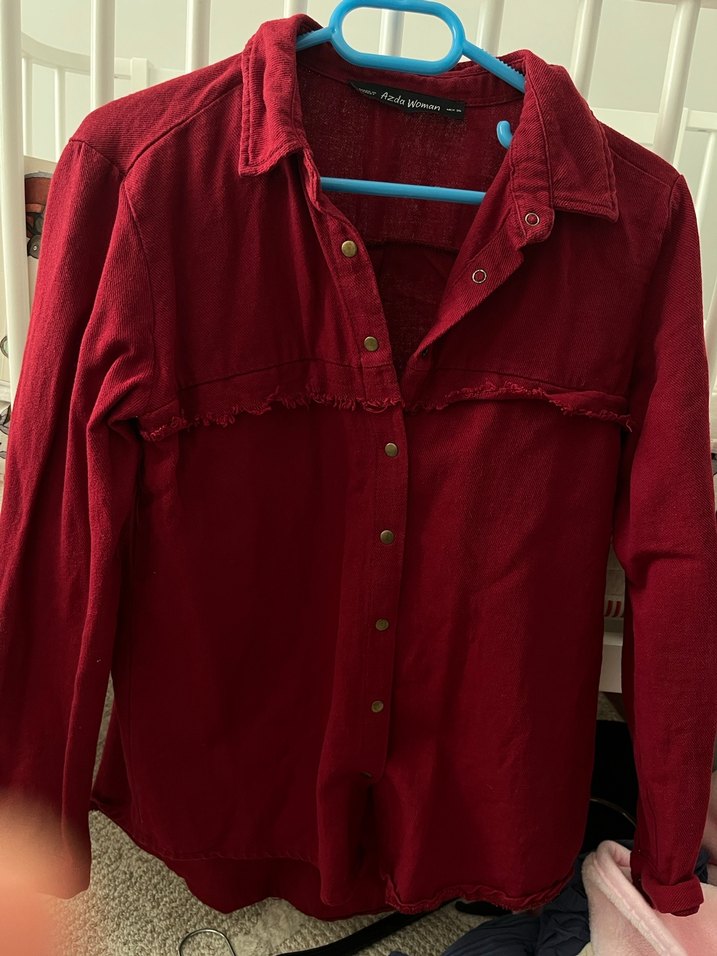 Bordo Düğmeli Uzun Kollu Kadın Gömlek