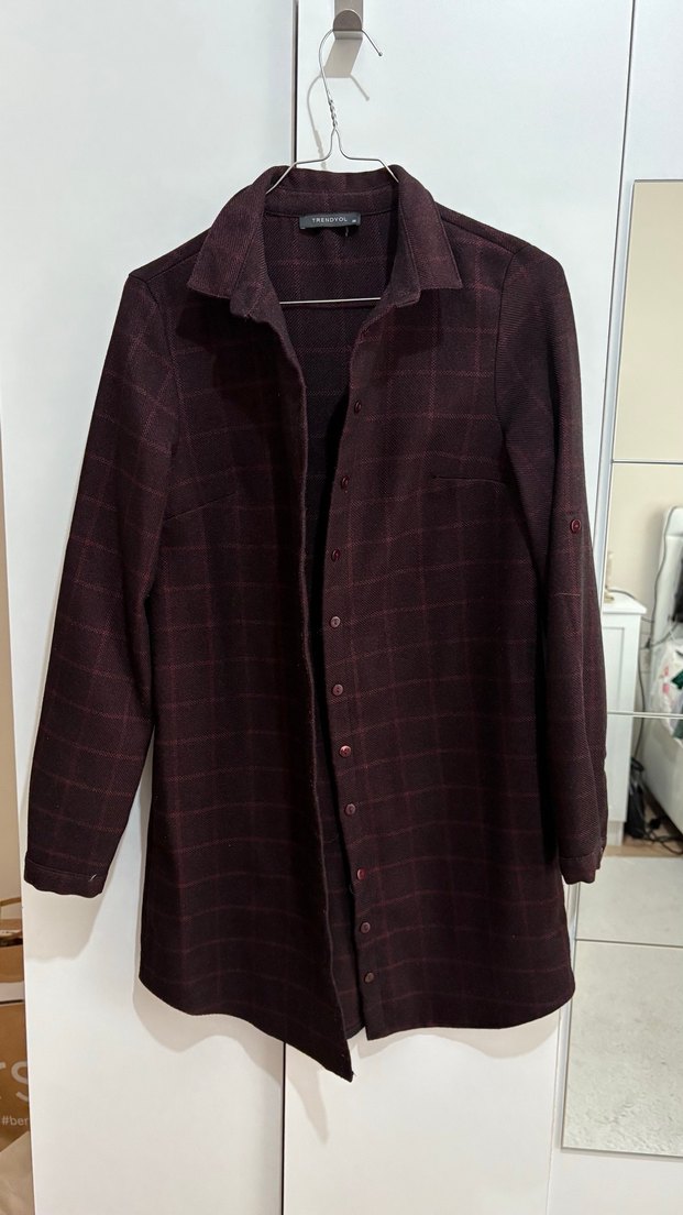 Bordo Düğmeli Uzun Kollu Kadın Gömlek elbise