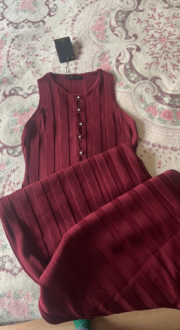 Bordo Düğmeli Uzun Triko Elbise